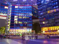 The most striking is the Sony Center, with its unique design featuring a central dome that resembles a giant flower ready to bloom. At night, the changing lights make the complex even more enchanting. Surrounding the Sony Center are numerous restaurants and cafes, making it a perfect spot for relaxation and gatherings.