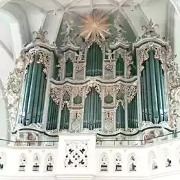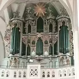 • The pipe organ at the center of the church is a historic instrument crafted by Joachim Wagner between 1720 and 1721, with its exterior decorated in 1742.