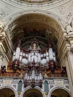 The main nave impresses with its soaring ceiling and luminous stained-glass windows. The ornate high altar, the intricate pulpit, and the Sauer organ with over 7,000 pipes are highlights not to be missed. The Hohenzollern Crypt below the cathedral holds the tombs of Prussian royals, offering insight into centuries of history.