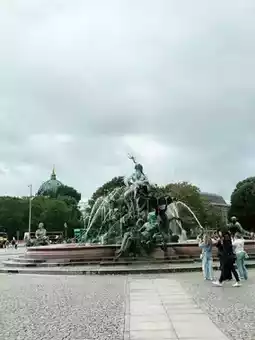 If you visit Berlin during good weather, you must stop by the Wasserspiele area near Alexanderplatz. This is a central city fountain square that exudes a truly European chill vibe. The fountain, called Neptunbrunnen (Neptune Fountain), features stunning Greco-Roman sculptures, and the water jets alternate in rhythm continuously.