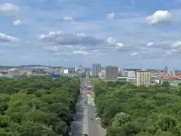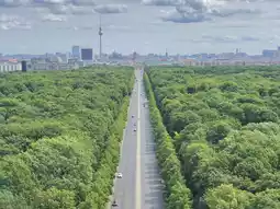 Inside the column, a spiral staircase leads to the top. After climbing 285 steps, you'll reach the observation deck. Though not very high, it offers a panoramic view of Berlin, including the Brandenburg Gate. Especially at sunset, the red sky blending with the green park creates a picturesque scene. The path up is narrow and steep, so it's best to take your time and rest along the way.