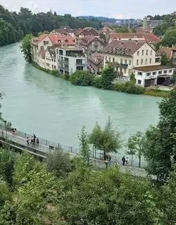 Kickstart your day at Rosengarten (Rose Garden), where you’re blessed with epic panoramic views of the turquoise Aare River wrapping all the way around Bern. The color? Next-level blue-green! From up here, you can spot modern buildings, ancient medieval rooftops, and loads of lush green trees lining both riverbanks—it’s totally IG-worthy. ☀️🌳