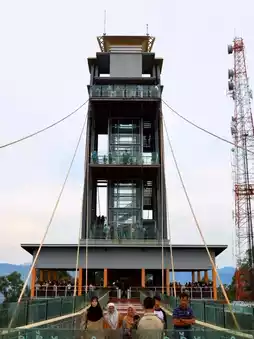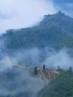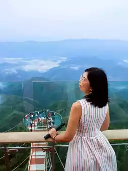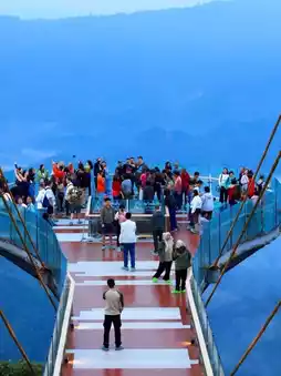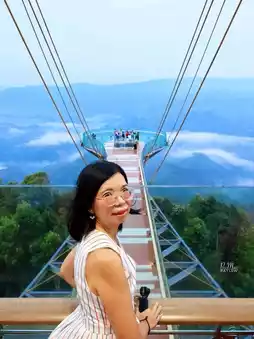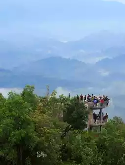 🌁 The Aiyerweng Skywalk is 621 meters above sea level. Its highlight is the 63-meter long walkway extending from the base. The glass-bottomed observation deck at the end offers a colorful and exciting view of the ground below. This viewpoint offers year-round views of the sea of mist and views of the Hala-Bala forest, one of the most pristine forests in Asia.