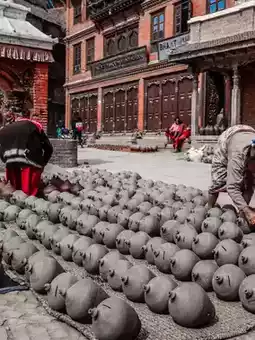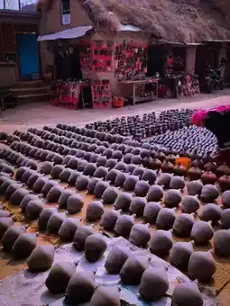 The potters in Bhaktapur use traditional techniques passed down through generations, including treadle-powered wheels. The square is a great place to experience the rich cultural heritage of Bhaktapur and its pottery traditions. Visitors can discover a wide range of pottery items, including functional kitchenware and decorative sculptures. Clay piggy banks are a popular item produced in the square, and traditional Juju dhau (yogurt) is often served in mud bowls made there.