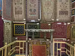 The main building was decorated with many old handmade fabrics, which were quite impressive.