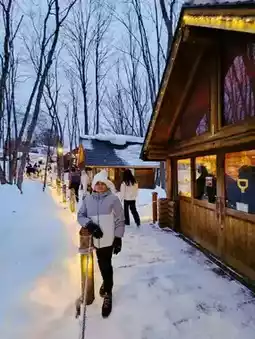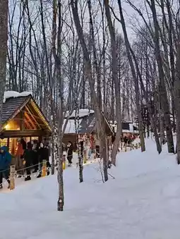 Arrive in Furano before dark to explore Ningle Terrace, a forest village of wooden cottages selling handmade crafts. As night falls, the area transforms into a fairytale with warm glowing lights and snow-lined paths — romantic and magical!