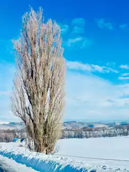 In the snowy world of Hokkaido in winter, there is a hidden and dreamy attraction, the "Ken & Mary Tree" in Biei Town. This poplar tree standing in the snow is like the protagonist in a winter fairy tale, quietly guarding the quiet grassland around it.
