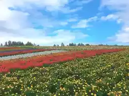 This vast area is covered with blooming flowers, creating a breathtakingly beautiful view. I've visited many flower fields before, but the scale of this one is truly overwhelming! It felt like a carpet of flowers spread out before me. It's less than a 2-hour drive from Asahikawa Airport and about 1.5 hours from Sapporo! If you're visiting Hokkaido, I highly recommend this spot. Since the grounds are extensive and require a lot of walking, I suggest wearing comfortable shoes.