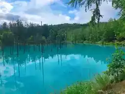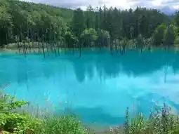 I visited around 10 a.m., so I was able to park without much waiting. The water in the pond was even more vividly blue than in photos! It was stunningly beautiful. Visiting in the morning meant fewer tour groups, allowing me to explore without any stress.
