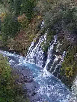 I visited Shirahige Waterfall in Biei Town. The water flowing out from between the cliffs looked like multiple "beards," creating a very mystical scene. Below the waterfall flows the Biei River, and the contrast with its cobalt blue water was stunningly beautiful. The view from the bridge was like a painting, a place you could gaze at forever. It was a very impressive waterfall where you could feel the strength and tranquility of nature.