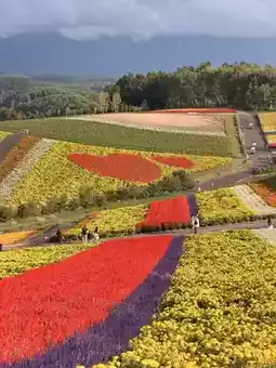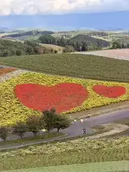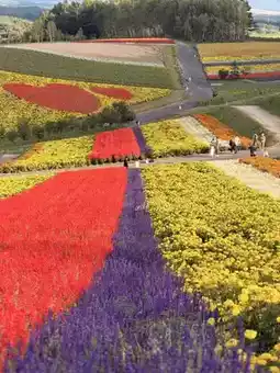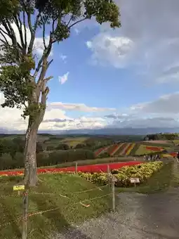 The flower fields and the Tokachi mountain range in the background are truly picturesque. This popular photo spot is sure to impress!