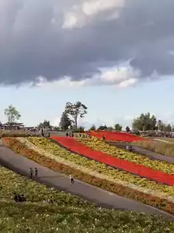 The colorful flower fields that spread across the vast grounds are as beautiful as a painting.