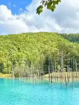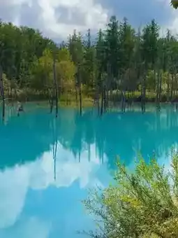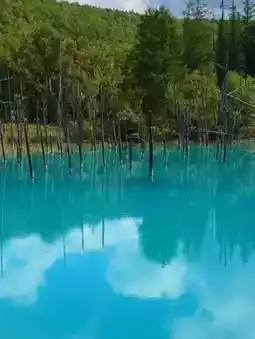 Aoike in Biei-cho, Hokkaido is so beautiful! Although the pool is not very big,🙋 ♀️ but when the weather is good and the sun is shining, the color of the pool water is so fantastic that it looks like a blue filter has fallen on it ~😮📸