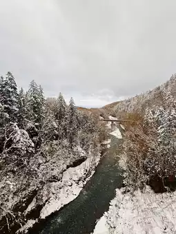 The view from the nearby bridge was particularly stunning. Although the sound of the water was loud, it strangely brought a sense of calm. Standing in the cold air of Biei, even the moment when my breath turned white and disappeared felt like a part of the scenery.