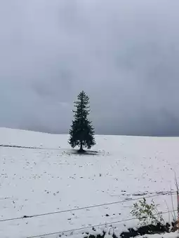 The Christmas tree standing in the middle of the snowy field had a presence even before its lights were turned on. The surroundings were pure white, and the air was as clear as glass. From a distance, it looked small, but as you got closer, the tree appeared quite large. Standing beneath it, you could feel the world momentarily quiet down.