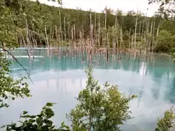 The Blue Pond (Aoi Ike), located in Biei Town, Hokkaido, Japan, is renowned for its mystical and dreamlike cobalt-blue waters.