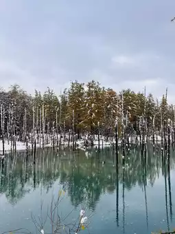 The crunch of footsteps on the snow echoed softly, and even breaths seemed to dissolve into the serene silence. Seeing that color in person, after only knowing it through photos, felt strangely unreal. Despite the chill biting at my fingertips, I couldn't help but keep gazing at it.