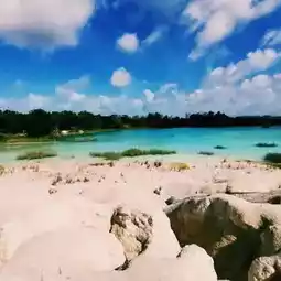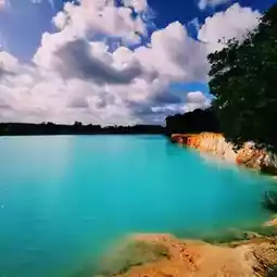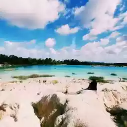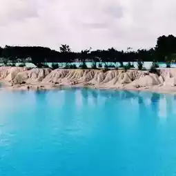Danau Biru Bintan, or "Blue Lake," is a hidden gem in Indonesia’s Riau Archipelago. Once an abandoned sand mine, it has transformed into a stunning turquoise lake surrounded by white sand dunes, creating a surreal and breathtaking landscape.