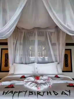 All the rooms at this resort are villas, and all come with a little pool attached as well so you can have a dip whenever you fancy. We were celebrating a birthday and the welcome decor in the room was a charming touch! Cake and fruit were provided for the occasion and we appreciated the swift response and good attitude of all their staff in handling our requests.