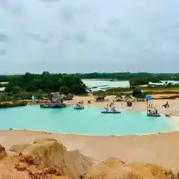 Blue Lake Bintan, also known as Danau Biru, is a mesmerizing oasis nestled amidst the golden sands of the Busung Desert. Once a bauxite mining site, nature has reclaimed this area, transforming it into a surreal landscape where shimmering white dunes meet vibrant turquoise waters.