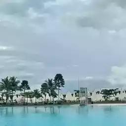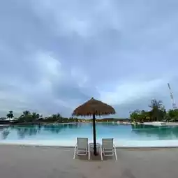 The ANMON Resort Bintan, located in Lagoi, Bintan Island, Indonesia, offers a unique desert-themed glamping experience. Guests can stay in luxurious safari-inspired tents equipped with air conditioning, private bathrooms, and modern amenities. The resort overlooks the stunning Crystal Lagoon, Southeast Asia's largest man-made seawater lagoon, providing a serene and picturesque setting.