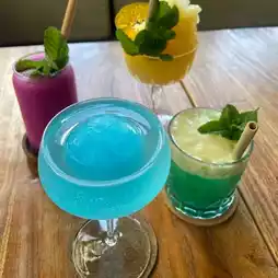 Great little place. The smoothies we ordered were all very refreshing and we all felt energised once we had drank them. You can sit down the end in comfort or sit up close to the chefs cooking overlooking the main road where you can people watch and watch people going about there say whilst eating.