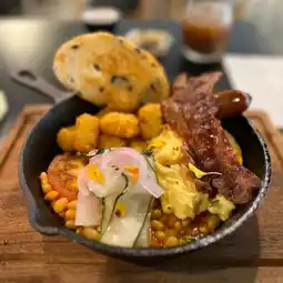 Well balanced coffee over mango/orange juice certainly hits the spots. Overall a cozy and friendly atmosphere with good service. The dips were excellent. For dessert, we had the deconstructed tiramisu, which was excellent.