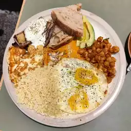 The builder‘s breakfast, the mediterranean breakfast and the breakfast croissant-wich, where the perfekt way to start our day. The staff is nice, fast and respectful. The waffles could have been topped with some whipped cream or ice cream and a more generous helping of maple syrup