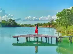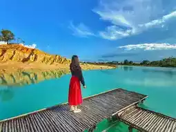 Blue Lake is a hidden gem on Bintan Island. Originally a quarry, over time it transformed into a clear and mysterious blue lake. The water's color changes depending on the angle of sunlight, ranging from emerald green to deep blue, showcasing nature's palette as if it were photoshopped.