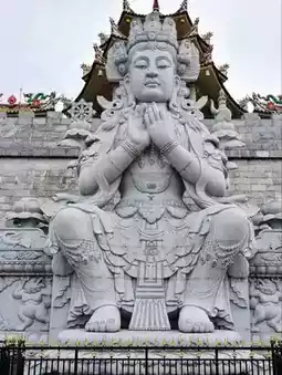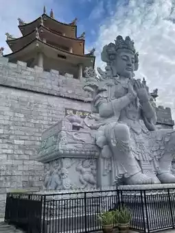 Walk through rows of these intricate sculptures and feel the atmosphere of serenity and devotion that fills the temple grounds 🕊️. Standing tall above them all is the majestic Guan Yin statue, symbolizing compassion and peace 🌄.