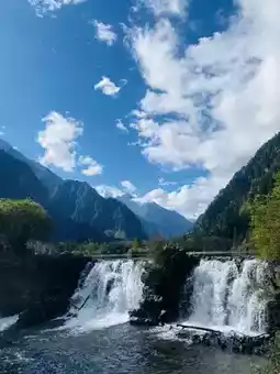 The scenery is magnificent, with waterfalls and crystal-clear blue lakes that look like a dream. It's less crowded than other places, and every corner is perfect for taking photos. There is a food zone at the front with delicious roasted sweet potatoes, grilled skewers, and barbecued meat. If you have a full day, it's highly recommended to visit. The view alone is worth it!