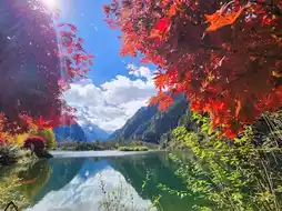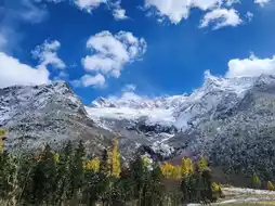 The autumn colors of Bipenggou are breathtaking, with red and yellow leaves against a backdrop of snow-capped mountains. Taken on Monday, October 27, 2025. Although it wasn't a holiday, traffic was terrible. I departed from Chengdu at 7:00 AM and didn't arrive until approximately 12:15 PM. Traffic must be even worse during holidays. Despite the long travel time, the scenery, if the weather is good, is absolutely worth visiting. A day trip to see both autumn colors and snowscapes is simply stunning.