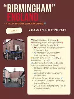 ๐ซ Morning: Visit Cadbury World ๐ฌ (~20 min train to Bournville ๐)
