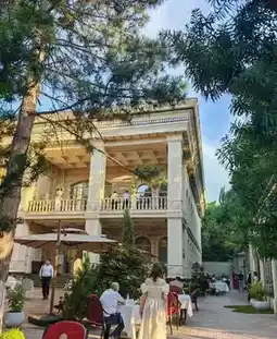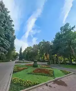 In the evening, be sure to visit Oak Park🌳 The park is covered with the afterglow of the sunset, and it is unbelievably beautiful. The design of the flower beds is full of ingenuity, instantly evoking childhood memories. The highlight is that there is a hidden gem restaurant here, which is one of the best in Kyrgyzstan! Don't be fooled by the reviews on Google that say it's expensive, the value for money is really high. You can order two soups, two main courses, some beer and drinks, and it will cost you about 300 RMB, including service charge. The taste and environment are amazing, it's a must-try!