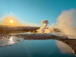 Geysir is the first geyser to erupt and the first geyser discovered in Europe. It erupts up to 70 meters, but the highest record has been broken to 170 meters. It is super awesome.