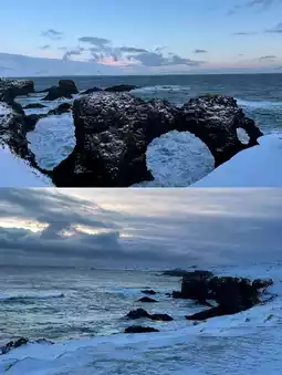 🔸The black sand beaches of the south coast resemble the lunar surface, with basalt columns standing in perfect rows as thunderous waves crash ashore. Nearby, the glacial lagoon floats with gleaming blue ice🧊, and seals occasionally pop their heads up to take a look.