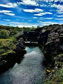A UNESCO World Heritage Site, Þingvellir National Park (Þingvellir þjóðgarður) is one of Iceland’s most extraordinary places, blending dramatic geology with deep cultural significance. Located about 45 km from Reykjavík, it sits on the Mid-Atlantic Ridge, where the North American and Eurasian tectonic plates drift apart, creating striking rifts and cliffs.