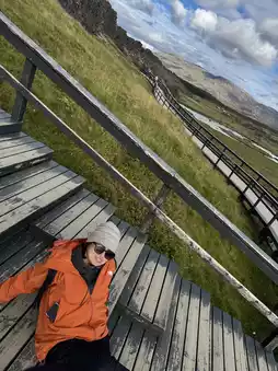 I took a quiet break on the steps overlooking the rugged terrain — the chill in the air balanced by my cozy jacket and warm beanie. It was one of those peaceful moments where time slows down, and you simply soak in the beauty around you.