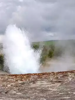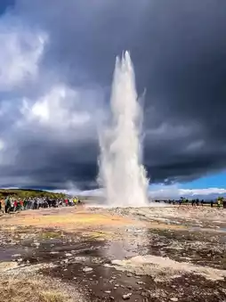 Strokkur Geyser, located in Iceland’s famous geothermal area near the Golden Circle, is one of the most exciting natural wonders to watch. Every few minutes, Strokkur erupts with powerful bursts of boiling water that shoot up 15 to 30 meters into the sky. Before it erupts, you can see the water bubble and swell like a living creature, glowing in a deep blue dome just moments before it explodes. The air smells faintly of sulfur, and steam rises all around, reminding visitors of Iceland’s volcanic heart beneath the ground. Strokkur’s rhythm is unpredictable yet mesmerizing—each eruption feels like nature taking a deep breath and releasing its power. Surrounded by hot springs and colorful mineral pools, the area looks almost otherworldly. Strokkur isn’t just a geyser—it’s a symbol of Iceland’s fiery spirit, showing how beauty and power can exist together in perfect harmony.