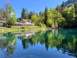 Nestled in a secluded forest area, Blausee is best reached by car. Alternatively, you can take a train to Kandersteg and then transfer to bus 230, which will get you to Blausee in about 10 minutes.