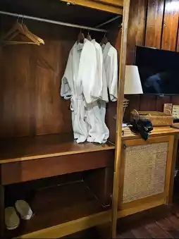 Since the room is entirely wooden, there might be some noise issues in the morning, but it’s quite peaceful at night.