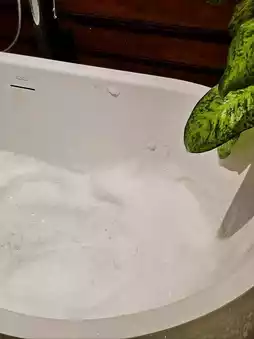 The room is equipped with air conditioning, a spacious bathroom, His & Her sinks, a bathtub with bath bombs, bathrobes, a sofa daybed for relaxing, and a dining table.