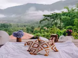 Bo Kluea River Hill has only seven houses, each uniquely designed and offering panoramic mountain views. Whether you're lying in bed or soaking in the tub, every corner is a delight. The food is excellent, from Northern Thai cuisine to chili pastes and curries. It's perfect for those seeking a break from the hustle and bustle. Sit and listen to the sounds of nature, sip warm tea, and gaze at the mist rising above the mountains. There are so many photo opportunities, you won't know whether to take a photo or rest.