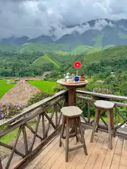 A cafe where the saying "coffee for tens, views worth millions" is no exaggeration. Located in the middle of rice fields, surrounded by lush green mountains, offering a 360-degree panoramic view that truly feels like "time has stopped."