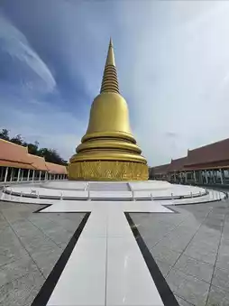 • Phra Borommathat Bunyawat, a large golden chedi enshrining the Buddha's relics, is located on a hillside. A short flight of stairs is required to enjoy the panoramic views of the surrounding green mountains. The chedi serves as a viewpoint and a key feature of the temple.