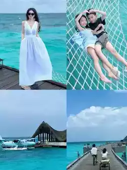I was immediately captivated by the rooms at Joali Being, with their girly macaron colors that are perfect for photos. The hotel facilities are very new, giving the entire island a clean and tidy feel. We booked a premium sunset overwater pool villa, with a large and clean pool, and the net bed and hammock are great for photos. Joali's overall decor is more subdued, with a very thoughtful makeup table and mirror for women, and they even provide a curling iron