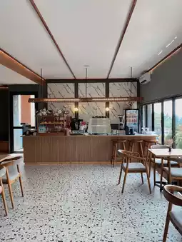 The minimalist concept has an indoor and semi-outdoor area on the 2nd st2 which is quite spacious, with a garden & villa view creating a comfortable and cool atmosphere.