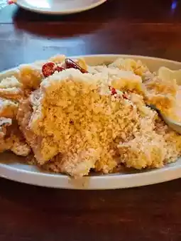 We ordered fried cuttlefish and a bottle of Chamisul soju. There's always something comforting about finding soju abroad. The fried cuttlefish was prepared in a breadcrumb style, giving it a soft texture and a nutty flavor that became more pronounced with each bite. Pairing it with the sauce added a sweet touch, making it the perfect snack to accompany drinks.