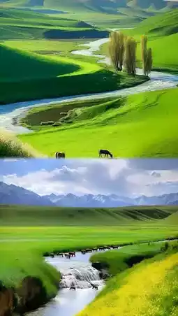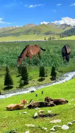 👉Nalati Grassland: The grass is becoming greener, contrasting beautifully with the distant snow-capped mountains and the characteristic yurts of the Kazakh people. It's like a paradise on earth. Ride a horse and enjoy the freedom.