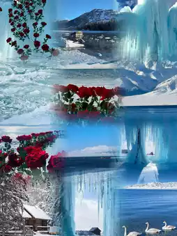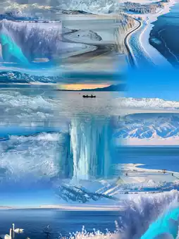 - Winter: Close-ups of blue ice cracks and ice bubbles.